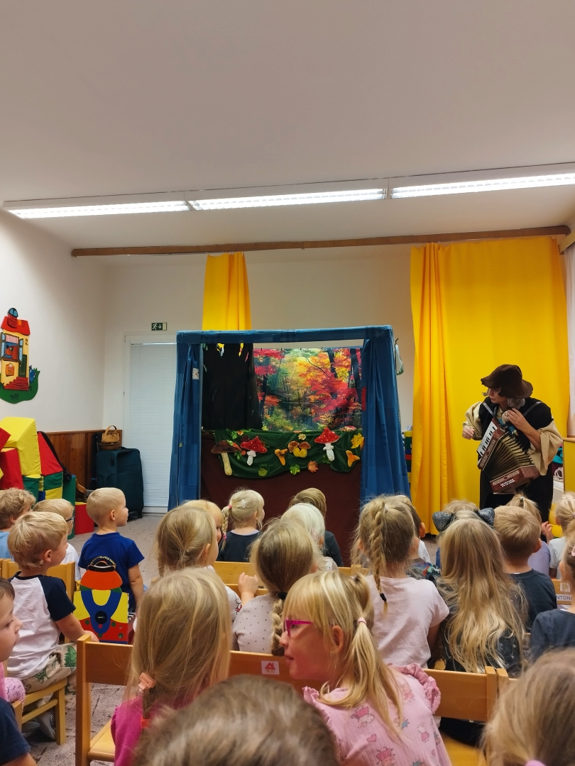 Děti z mateřské školy se ve čtvrtek 25. září 2025 vydaly autobusem do Rychnova nad Kněžnou, kde je čekal kulturní i zábavný program. Nejprve se děti zastavily na hřišti, kde si společně pohrály, proběhly se a užily si volný pohyb na čerstvém vzduchu. Poté se společně přesunuly do mateřské školy Kytička, kde pro ně bylo připraveno divadelní představení.