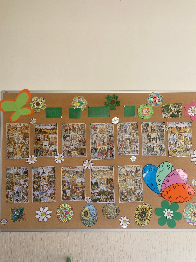 Po celý tento školní rok se budeme ve školní družině věnovat projektu Rok na české vsi. Žáci si s nadšením prohlédli motivační nástěnku s přehledem jednotlivých měsíců s vyobrazením typických českých tradic a vesnických činností. Projekt je zaujal a s nadšením se pustili do vytváření první projektové aplikace na téma Voděradské posvícení.