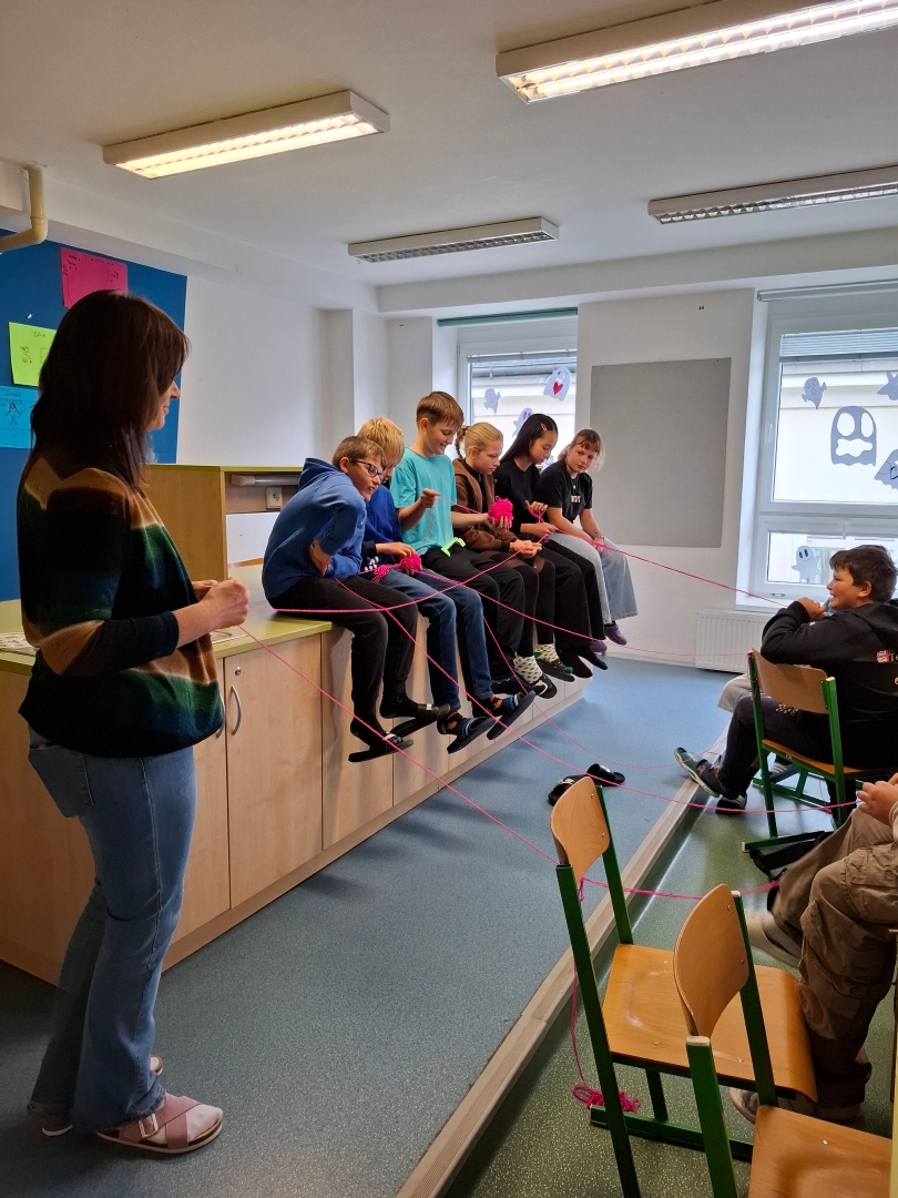 Ve fotogalerii přinášíme ukázku z třídnické hodiny v 6. ročníku s paní učitelkou Kateřinou Oždianovou a paní asistentkou Petrou Gregorčíkovou (téma: Pavučina přátelství).