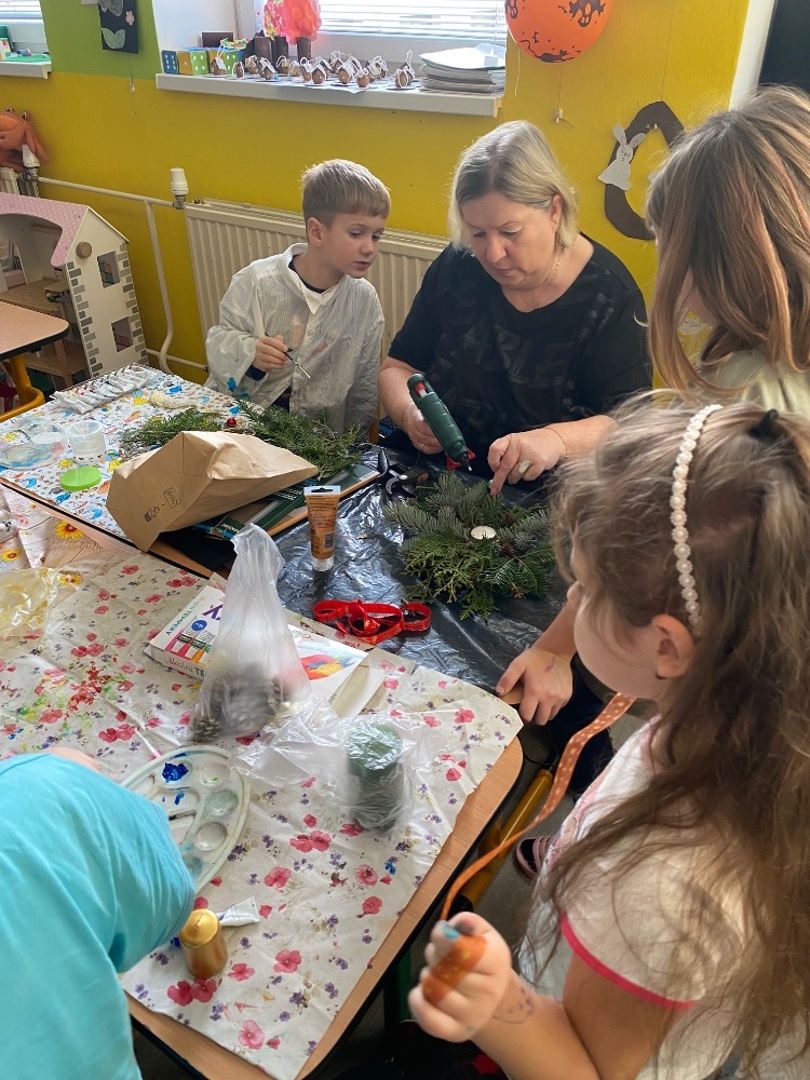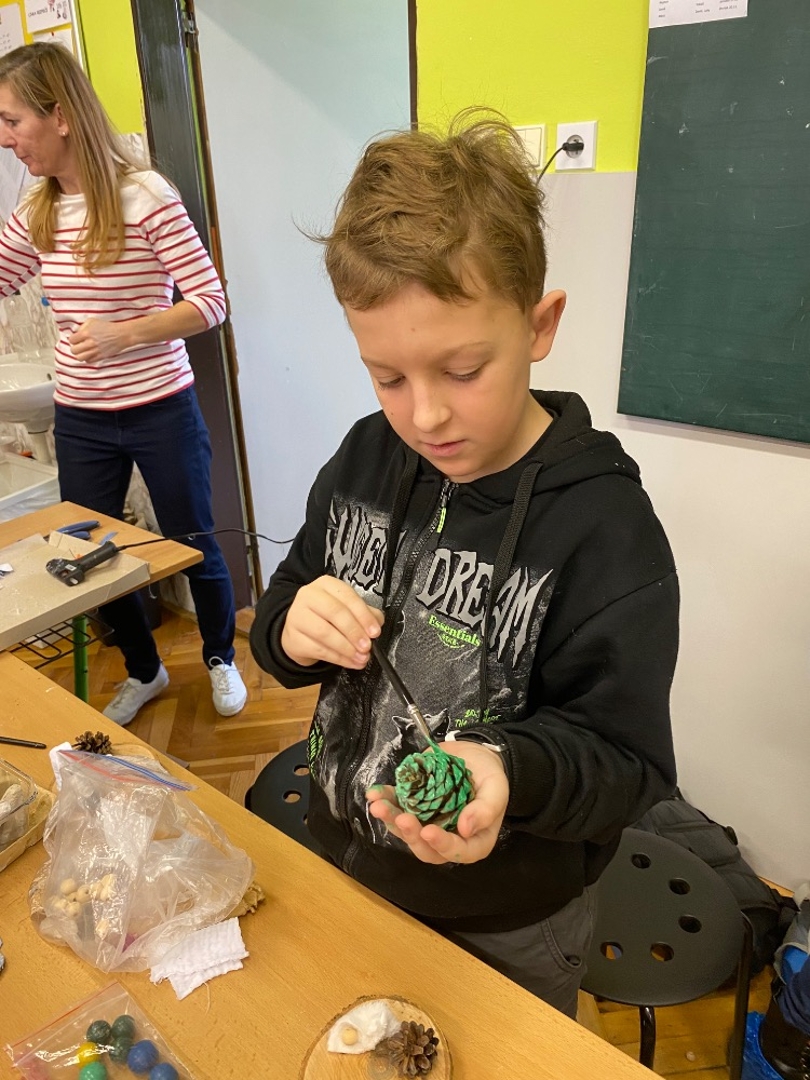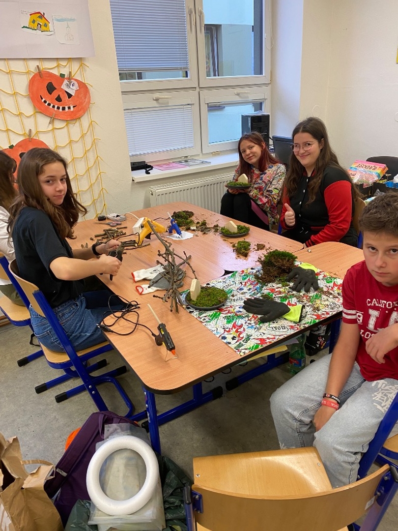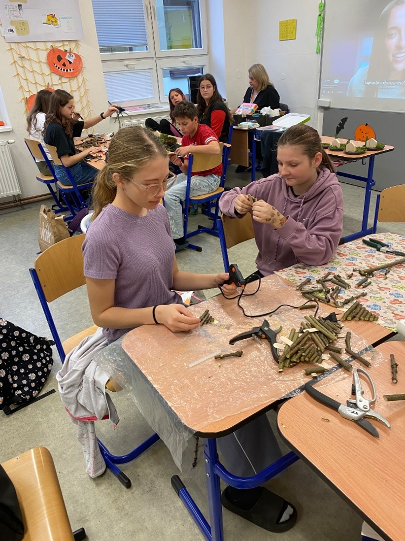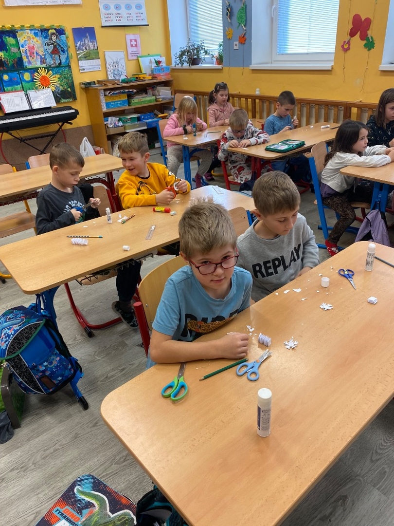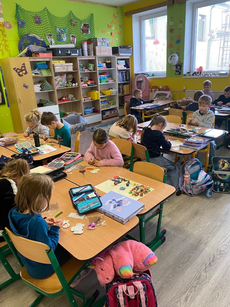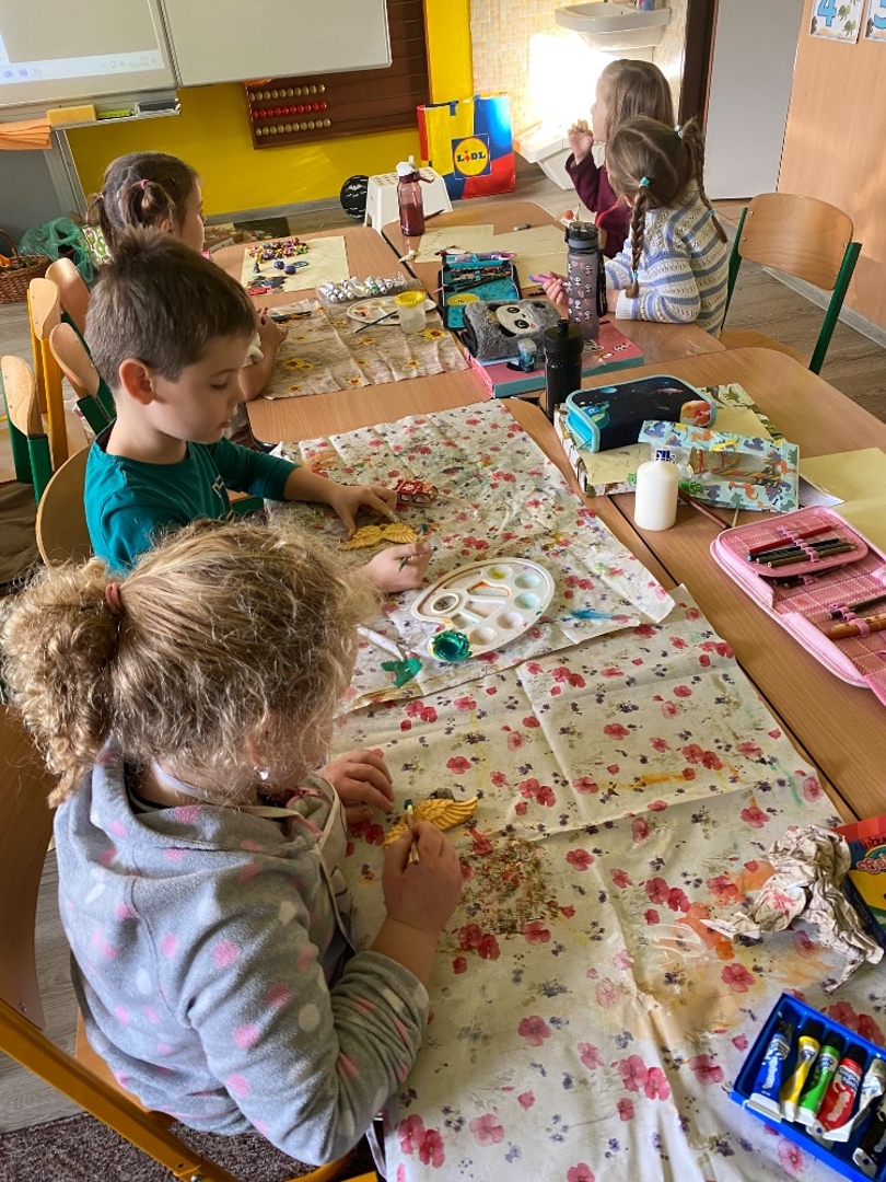 Velkou radost máme z toho, že se do dílen zapojila také naše partnerská škola ZŠ Lično. Žáci 4. a 5. ročníku společně s paní učitelkou Fryntovou pracovali v páté třídě a přinesli do řemeslnických aktivit nové nápady i energii. Spolupráce obou škol se opět ukázala jako velmi přínosná a inspirativní.