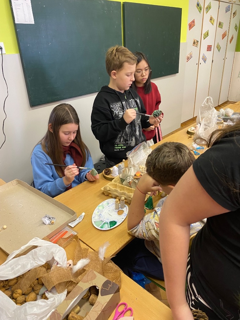 Ve čtvrtek 20. listopadu 2025 jsme ve škole přivítali žáky 4. a 5. ročníku ze ZŠ Lično, naší partnerské školy. Pod vedením paní učitelky Lenky Fryntové (Voděrady) a Evy Alexanderové (Lično) se společně s našimi páťáky zapojili do řemeslnických dílen, které probíhaly v rámci příprav na adventní jarmark.
