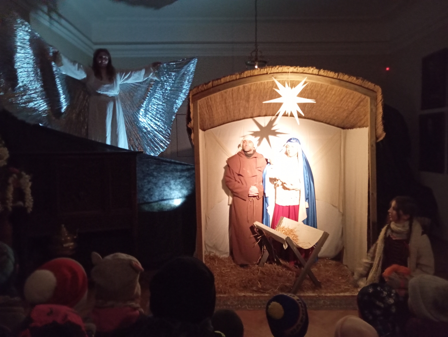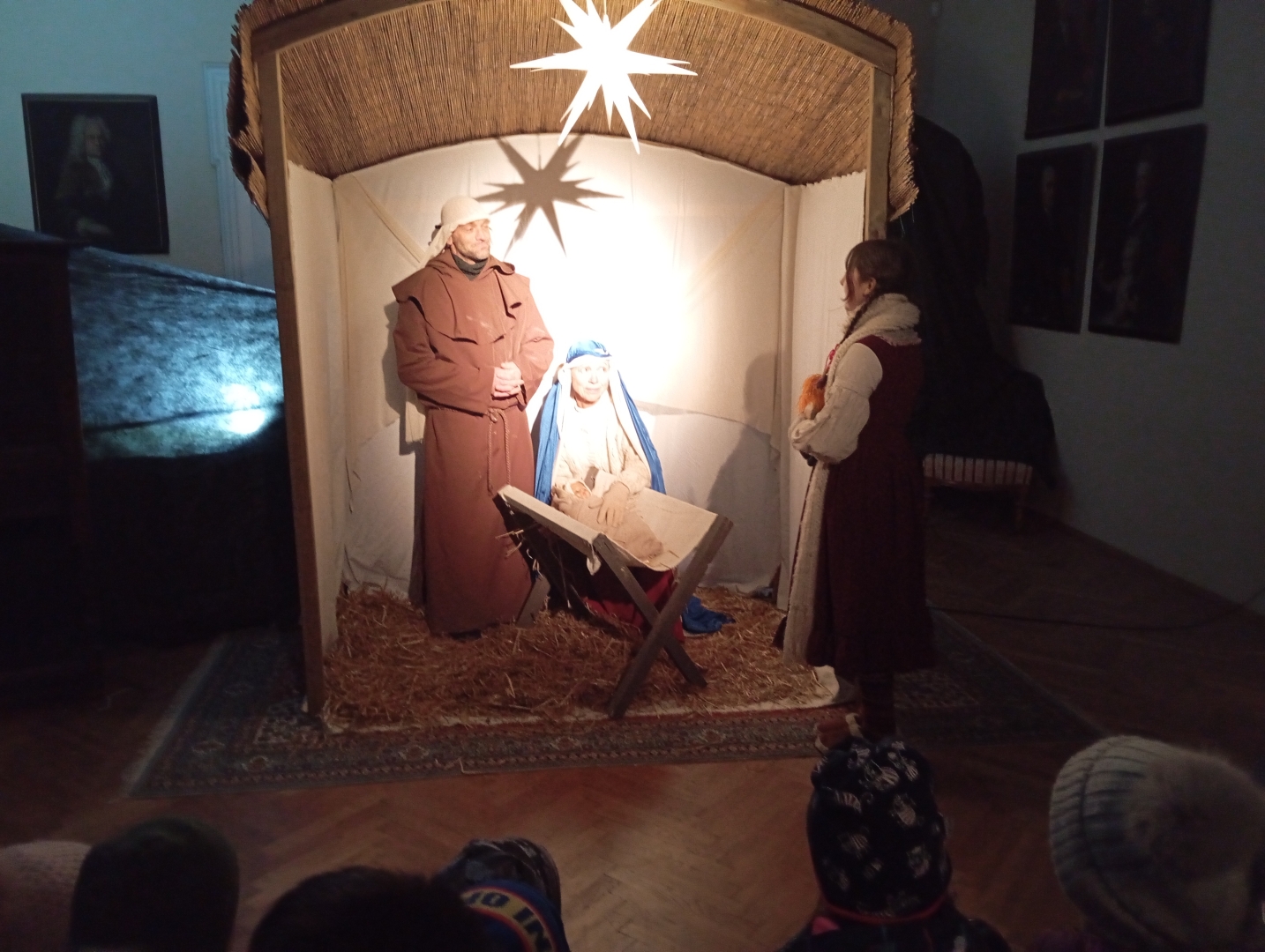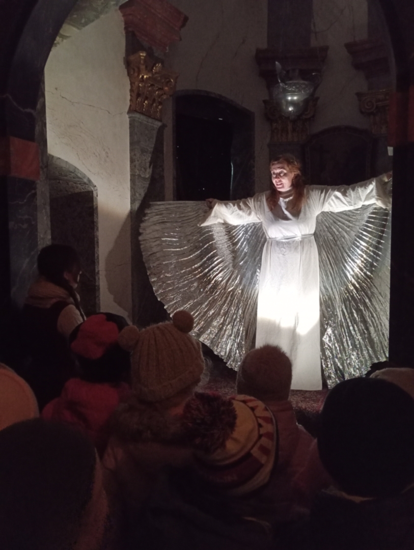 Tam na nás čekal velice zajímavý program, který naše děti moc potěšil. Hned na začátku u potštejnského zámku nás přivítala paní průvodkyně a uvedla nás do tématu Vánoc. Uvnitř zámku se odehrával vánoční příběh. Čekala na nás dlouhá a poutavá cesta do Betléma, které jsme