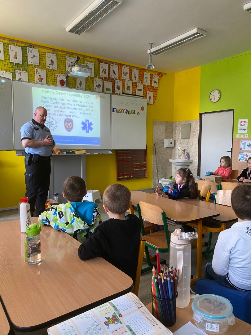 Pro žáky 1. a 2. třídy jsme uspořádali ve spolupráci s Policií ČR zajímavou přednášku na téma bezpečí a prevence. Lektorem byl poručík Jaroslav Matoušek.