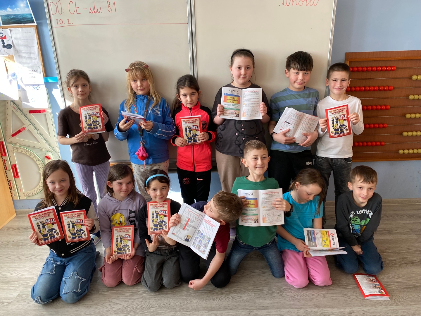 Je to HASIČ. Ano. A pro jednu třetinu třídy to bylo jednoduché, protože navštěvují hasičský kroužek. A právě od sdružení hasičů Čech, Moravy a Slezska jsme dostali výukový sešit – „Hasič Tonda si ví rady.“ Postupně si z něho čteme důležité informace, vyprávíme si o nich, řešíme situace a
